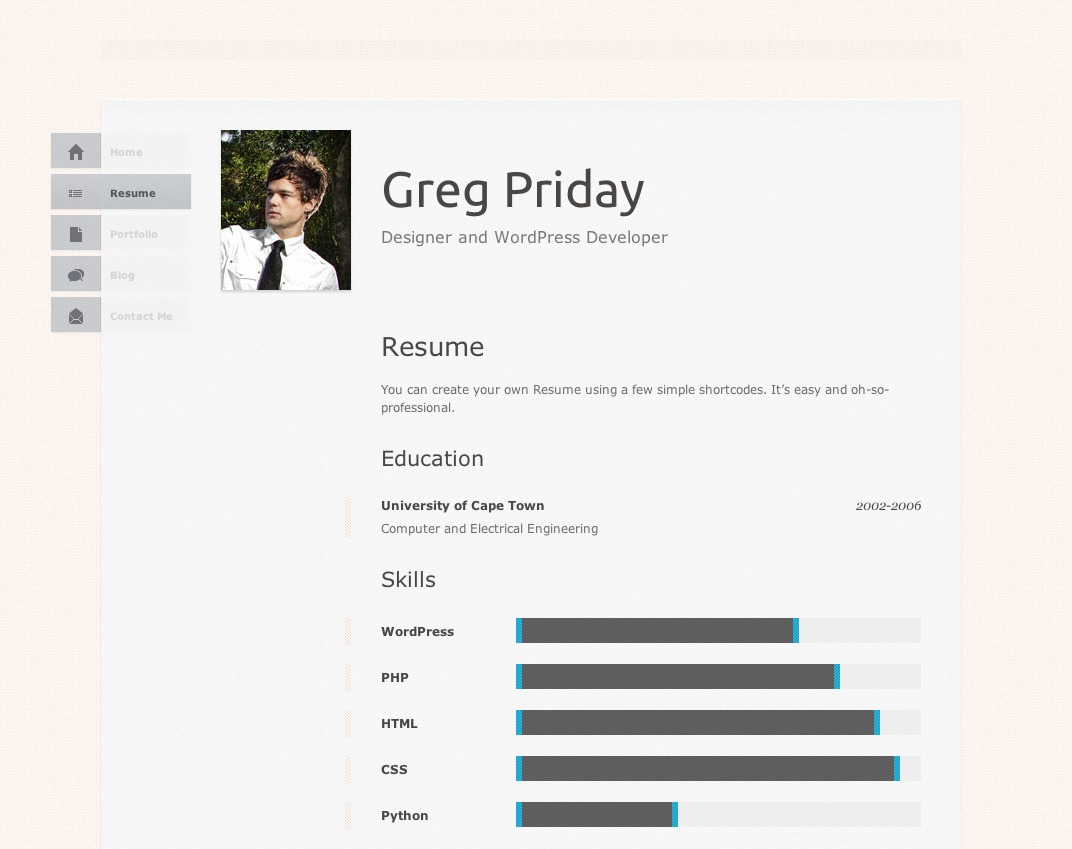 For professionals and freelancers, a personal website means just one page of resume related content and nothing else. Designed as an online business card, the vCard free one page WordPress theme has been designed to keep things simple, while giving the visitors a look into the content you have to offer in the blog section.